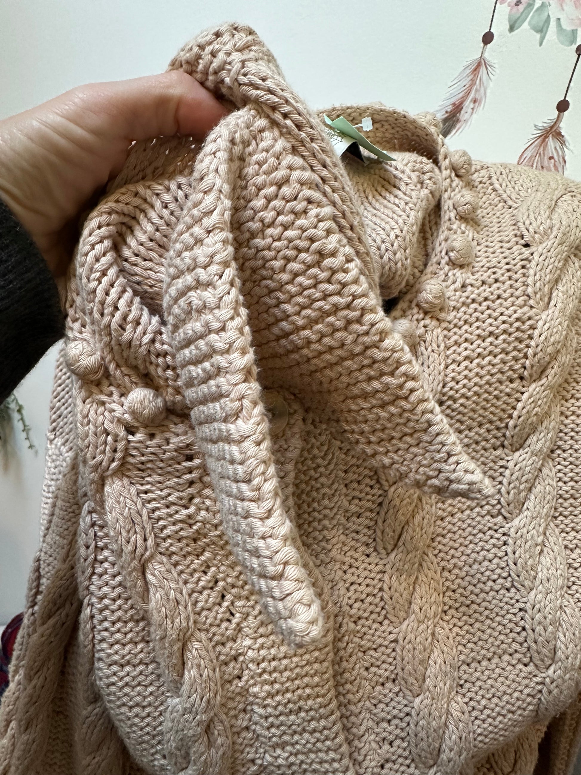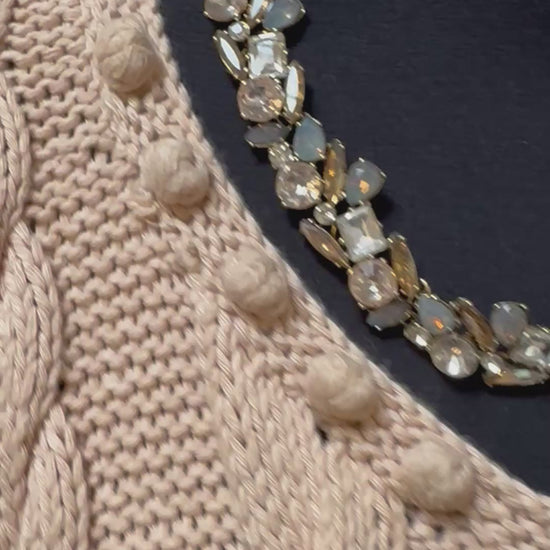 Designer Golden Spiderweb 100% Heavy Cotton Knitted Cardigan with Shoulder Pads Best Fit Size L