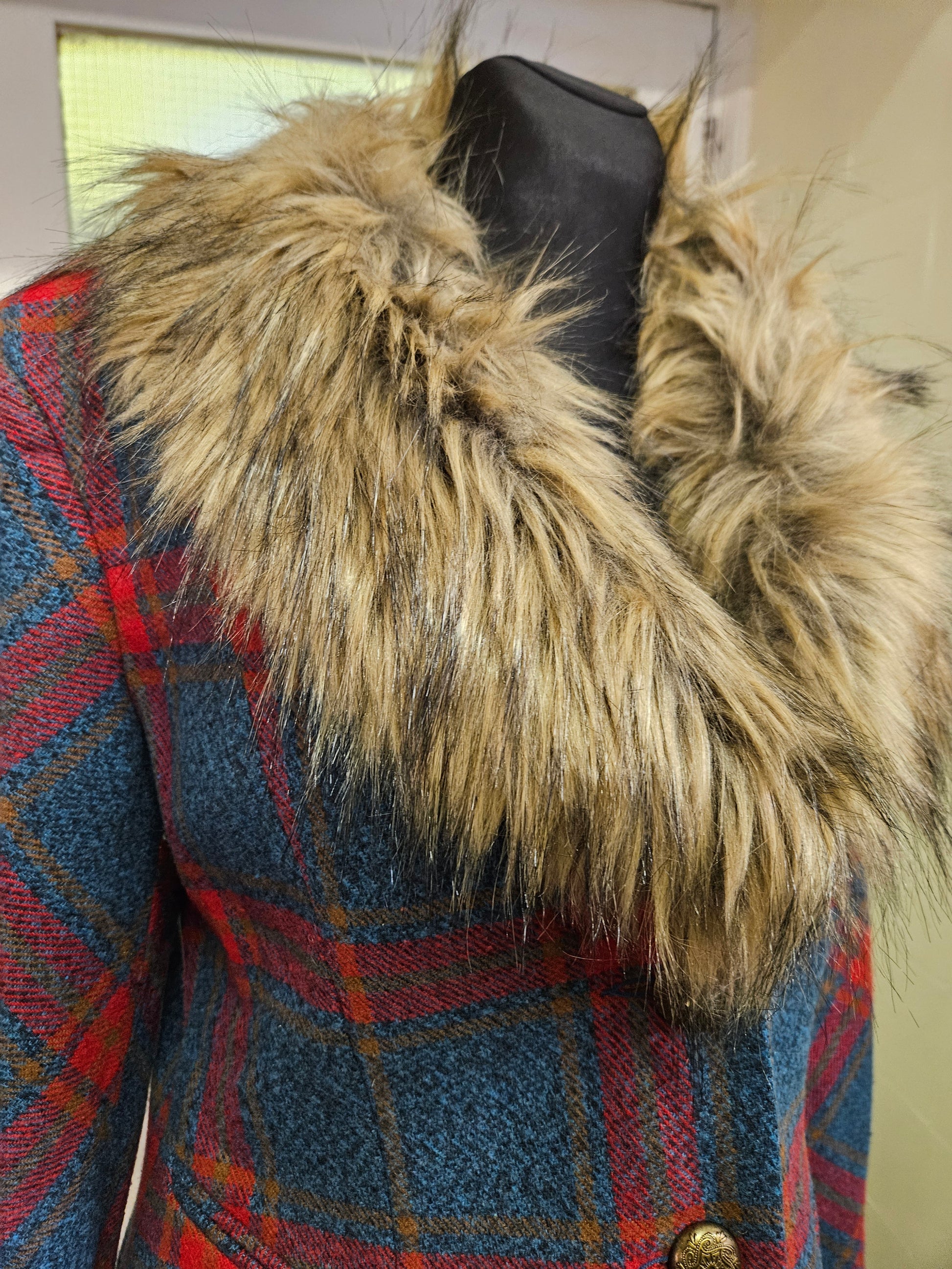 Joe Browns, Checked tweedy jacket with faux fur collar, size 14
