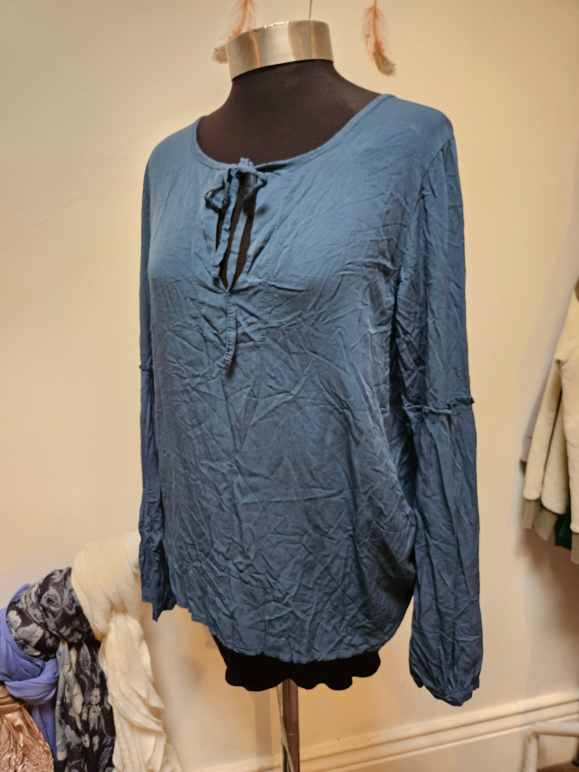 La Fe Maraboutee viscose blouse, tags on, rrp 75€, petrol blue, size M