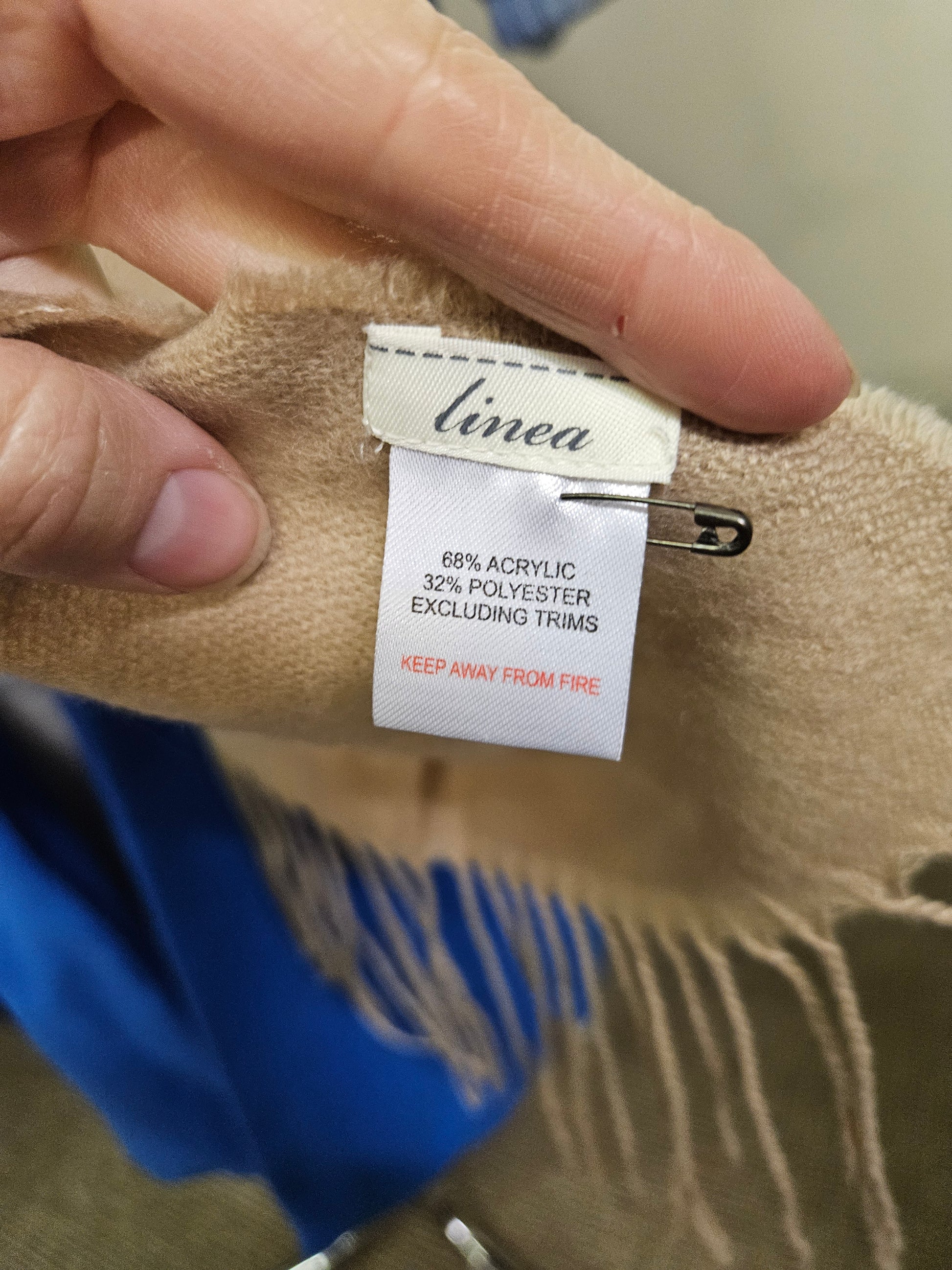 Linear, beige scarf with tassles